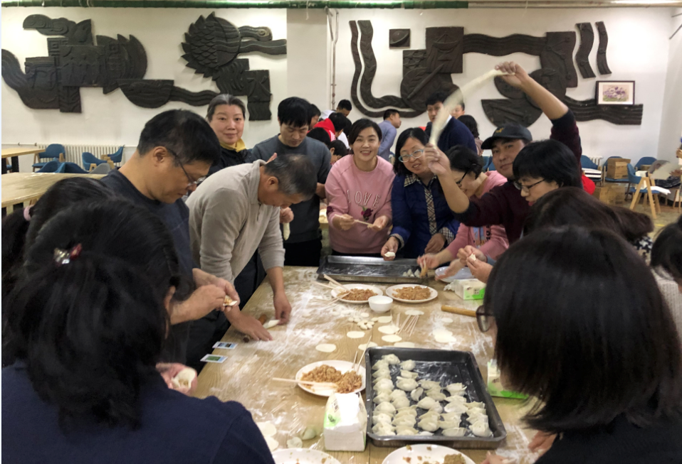 其乐融融的包饺子场面