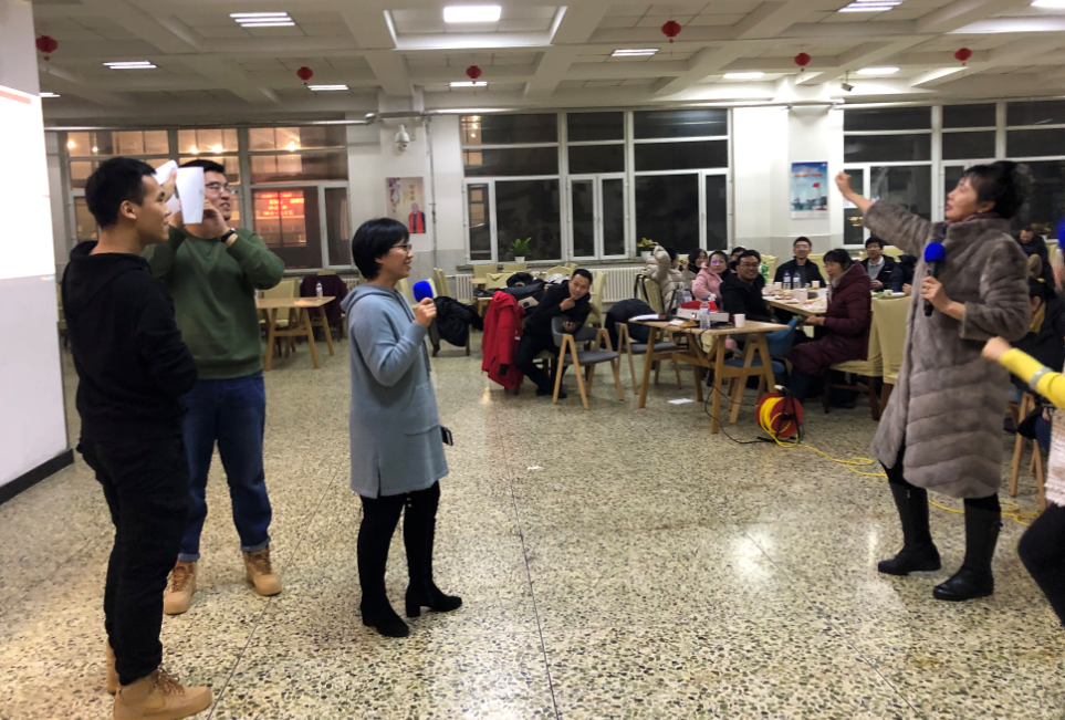 活动在老师们精彩的舞蹈表演中拉开了帷幕。随后,全体教师开展了“包饺子活动”,同时教师们纷纷展示才艺,轻快的舞蹈和优美的歌声向大家展示了教职工课堂之外的风采。接下来的游戏环节大家踊跃参与。共设置了两个项目,分别为“你做我猜”、“正话反说”,项目内容新颖、妙趣横生,使参加活动的老师们体会到了活动的乐趣,更感受到了团结协作的重要。比赛中,老师们纷纷为参赛人员出谋划策,助威呐喊,到处都洋溢着轻松愉快的气氛。活动期间,穿插了抽奖环节,由领导和嘉宾为获奖老师颁发了奖品。