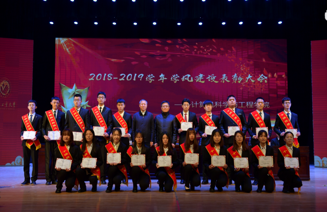 副院长郑虹宣读了《关于表彰2018-2019学年学风建设工作先进集体及优秀个人的决定》,院长助理程超宣读了《关于表彰2019年大学生科技竞赛月优秀团队及个人的决定》。