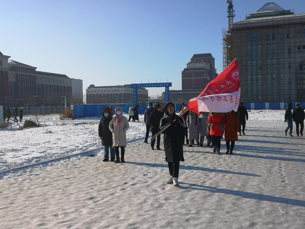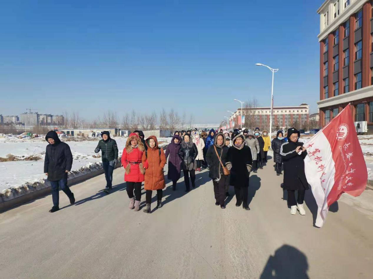 12时15分,所有教职工从计算机办公楼前出发合影留念。参与活动的老师徒步往返于我校北湖东、西两个校区,教工们在徒步行走的过程中相互激励,共帮互助;在行走中坚定内心执着的信念,在行走中发现更好的自己。一路欣赏沿途冬景,欢声笑语,见证着北湖校区主楼、计算机楼、图书馆、体育馆、体育场等主体建筑拔地而起,共同畅谈工业大学的美好明天。