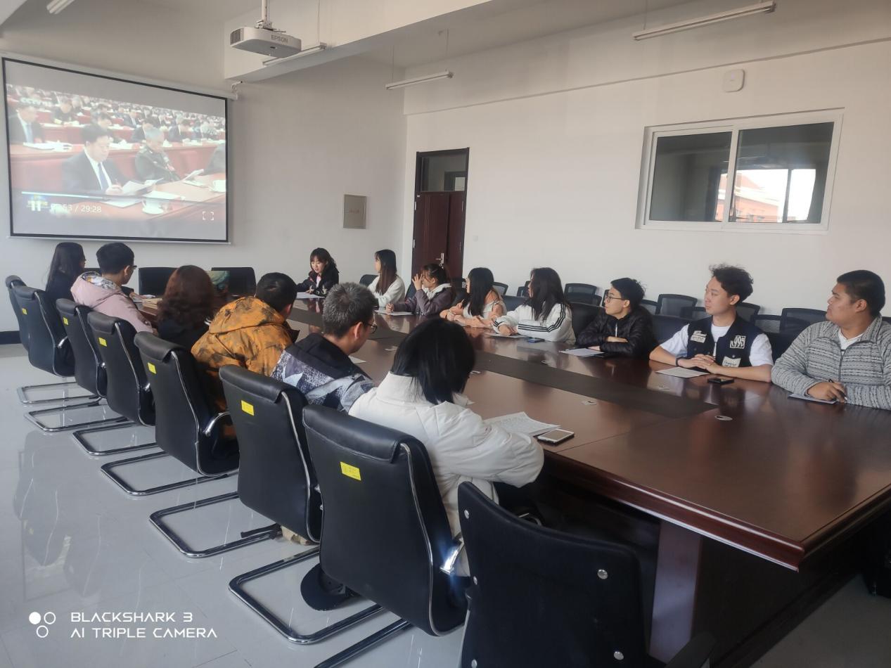 学生第二党支部在计算机楼315会议室召开全体党员大会,深入学习党的十九届五中全会精神。