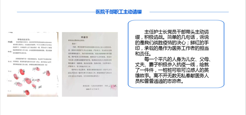 学习抗疫一线党员的典型事迹,更加深刻地了解到了抗疫医护人员的点滴艰辛和对祖国与人民的无私奉献。同时,意识到现在是打赢疫情防控阻击战最关键的时刻,作为学生党员要勤奋学习、健康生活,服从组织安排,以实际行动践行初心、勇担使命,为全面取得抗击疫情胜利贡献自己的力量!