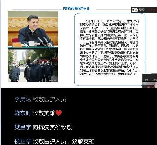 师生被医护人员勇于担当、冲在一线的奉献和付出而感动,正是他们用自己的所有保证了大家的安全,创造了岁月静好。广大师生充分理解了他们舍小家为大家、先国家后个人的家国情怀,这是中华文化的核心基因和中华民族的精神标识,更是所有中华儿女的无悔追求。通过学习讨论,广大师生进一步体会到了责任和担当的内涵。责任担当意味着牺牲和付出,同时也是一个人成长的舞台和机遇。年轻人应该用青春担当创造美好未来。