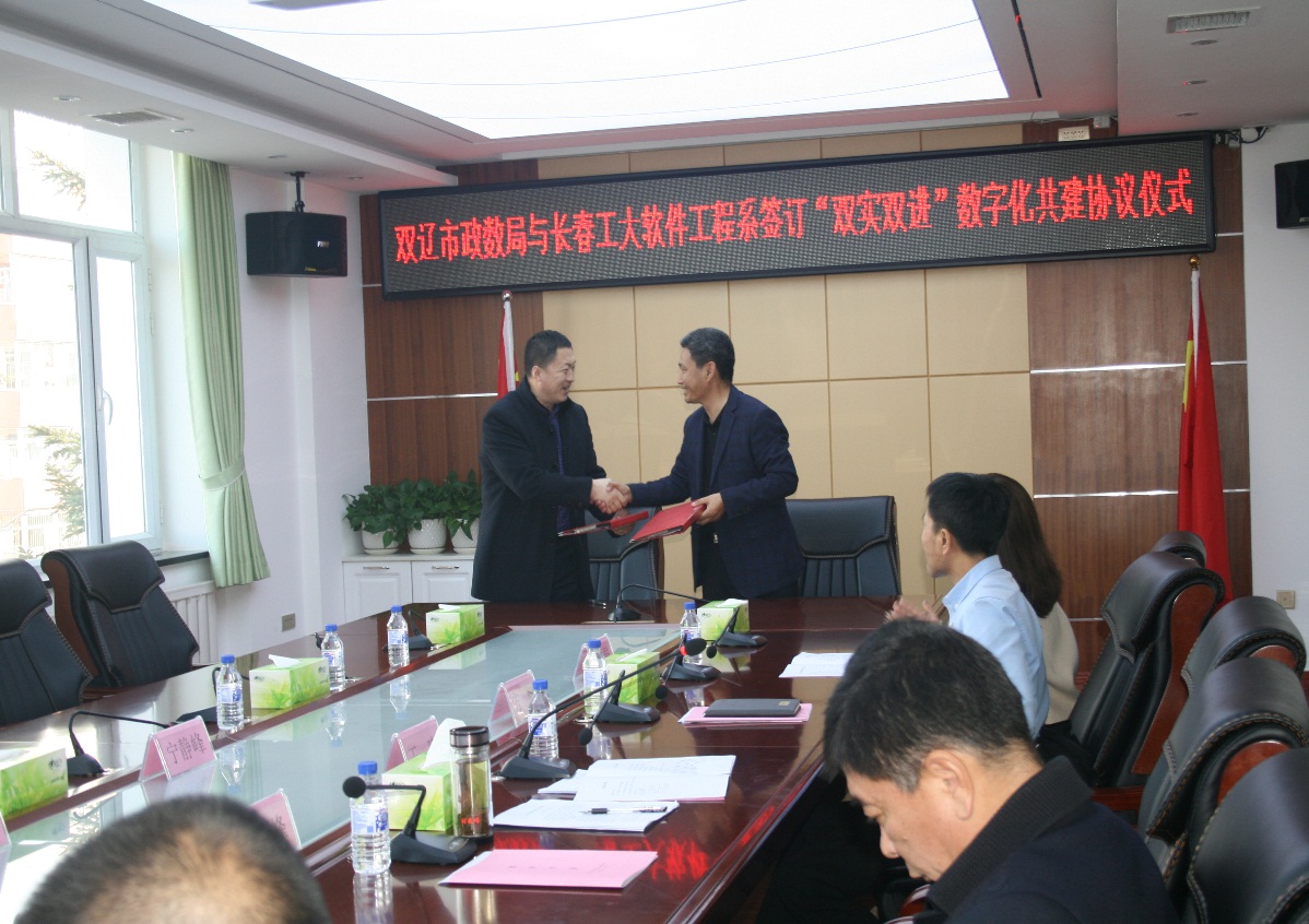 王建局长宣读了共建共创方案。双方就党建等基本情况进行了介绍,针对双辽市数字化建设之初存在的问题、指导思想、实施步骤、实施内容、工作要求进行了广泛深入的交流,举行了庄重而简约的结对仪式,中共双辽市政务服务和数字化建设管理局与软件工程系党支部签署了“双实双进”数字化共建协议书。随后在王局长的带领下,双方来到双辽市政务大厅进行了实地调研。