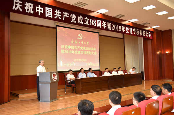 6月28日,学校在学术报告厅召开庆祝中国共产党成立98周年暨2019年党建专项表彰大会。学校领导、党委常委,全体中层干部、受表彰集体和个人代表、全体教职工党支部书记、专兼职组织员、党务秘书参加了会议。党委副书记、校长张会轩主持大会。