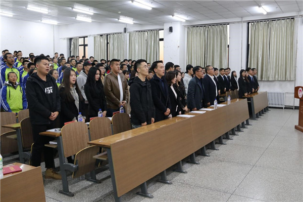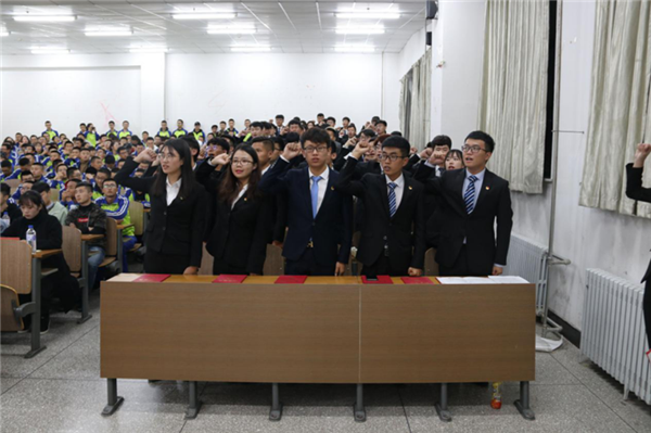 大会在庄严的国歌声中拉开了序幕。首先,由第二十七届学生会主席丛龙旭从成绩概况及问题清单等方面对过去一年的工作进行了总结汇报,并表达了对新一届学生干部的美好祝愿和鼓励。随后,王珺楠老师宣读了新一届团委、学生会、社团联合会主要学生干部名单。接下来,第二十八届学生会主席乔俊豪代表新一届团学干部做工作展望,表达工作决心和信心。第二十八届社团联合会主席孙冠航带领新当选学生干部宣誓,表达为校服务,为学生服务的工作热情和决心。季宏伟老师为团学联学生干部代表颁发了聘书,他对新一届学生干部表示祝贺的同时,充分肯定了上一届学生干部的工作和成绩,并对新当选的学生干部提出了要求和希望:要求他们要加强学习,内练素质,外塑形象,工作中要团结协作,凝心聚力。力争成为一支“讲奉献、勇担当、有作为”的高效的团学干部队伍,为日本做爱