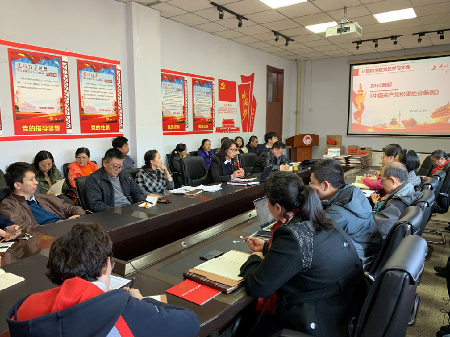 党委书记任红从新修订的《中国共产党纪律处分条例》的突出特点、对新修订的《中国共产党纪律处分条例》的领悟,如何贯彻执行新修订的《中国共产党纪律处分条例》三个方面就学习贯彻新修订的《中国共产党纪律处分条例》同大家进行了学习和分享。她介绍了本次修订的原因背景,从“一个思想”、“两个坚决维护”、“三个重点”、“四个意识”和“四种形态”、“五处纪法衔接”、“六个从严”、“七个有之”、“八种典型违纪行为”等方面深入解读了新修订的《中国共产党纪律处分条例》的亮点,并围绕高校教师工作中的违纪案例对新修订的有关内容进行了对照说明。