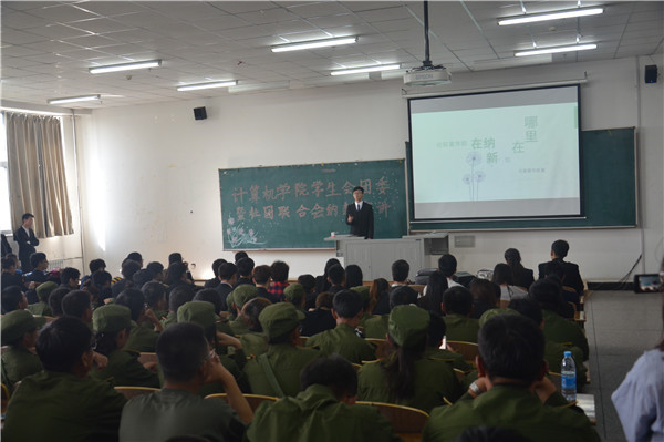 于北湖校区西阶202教室举行了团委、学生会暨社团联合会纳新宣讲会,2016级新生辅导员庄园、辅导员助理钱庆伟及全体2016级新生参加了本次活动。