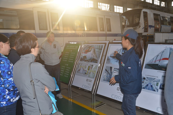 随后,长客领导带领教师党员们参观地铁车间的生产线,为我们讲解地铁生产的流程及工艺。告诉大家:“长客公司不仅生产高铁,同时也在生产普通火车车厢和城际轨道客车如地铁、轻轨等。长客城轨车不仅在国内销量斐然,也受到了国际市场的瞩目。产品已出口到伊朗、沙特阿拉伯、香港、巴基斯坦、孟加拉、巴西等多个国家和地区。孜孜不倦的长客人,正在为了将火车销售到火车的‘故乡’——欧洲,而不懈努力。”