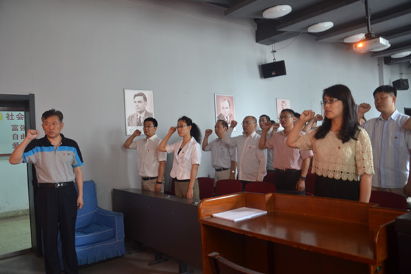 会议室举行了党员重温入党誓词仪式,活动仪式由党委书记任红主持。