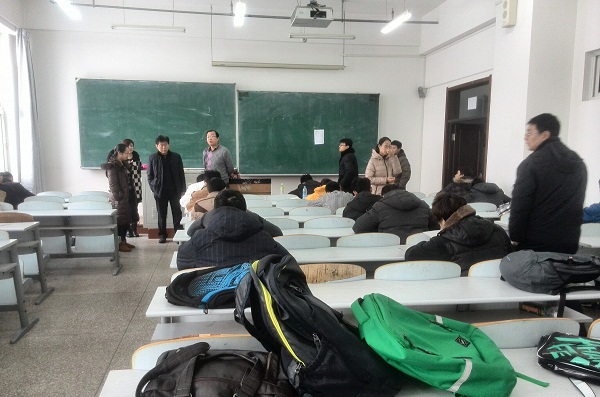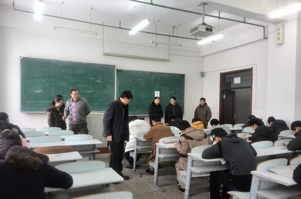 的领导们高度重视,于2014年12月30日9:40分,院长王宏志、党委副书记陈绍辉、副院长陈志雨、郑虹、林园校区办公室人员以及辅导员老师对本学期期末林园校区考场进行巡视。