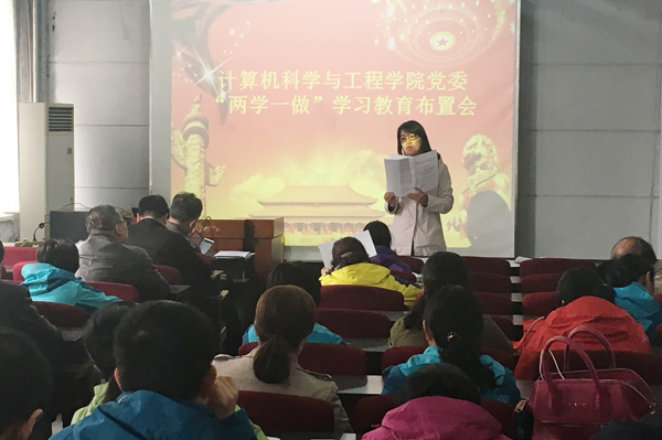 任红宣读了学校党委《关于在全校党员中开展“学党章党规、学系列讲话,做合格党员”学习教育的实施方案》,她在动员讲话中指出,“两学一做”学习教育是面 向全体党员深化党内教育的重要实践,是推动党内教育从“关键少数”向广大党员拓展、从集中性教育向经常性教育延伸的重要举措。