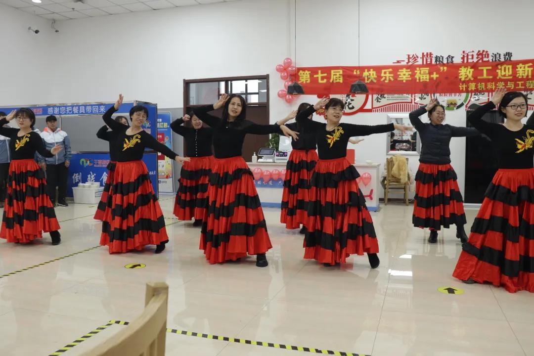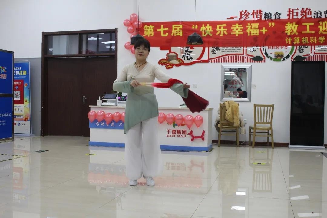 在等待饺子出锅的时间中,教师联欢会正式开始。首先登场的是计算机与信息实验中心的老师们。一曲《我和我的祖国》舞蹈,跳出了他们对工作的热情,也跳出了他们对祖国深沉的爱。