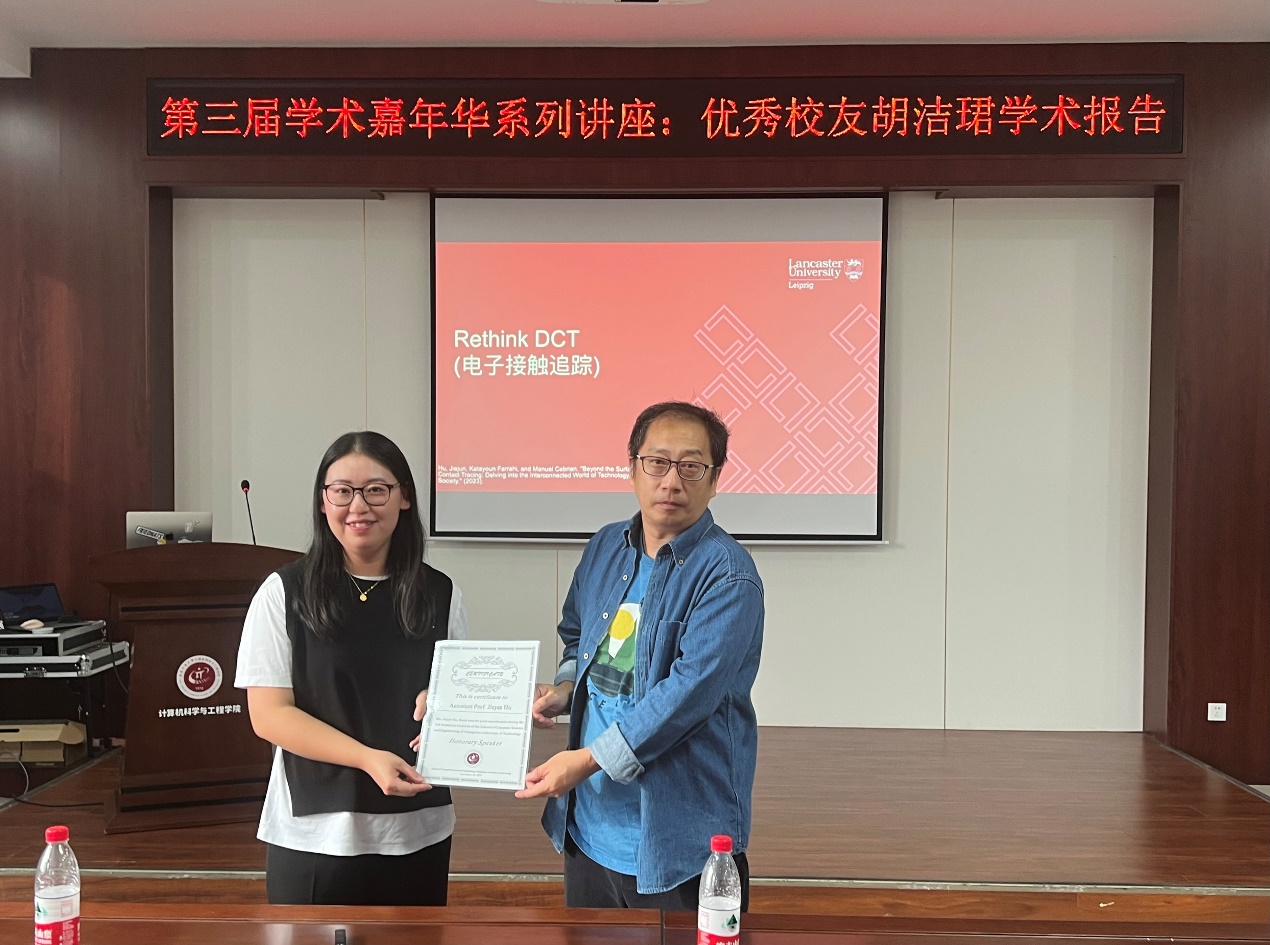 开展庆祝建院45周年暨第三届“学术嘉年华”系列讲座。本次讲座的特邀嘉宾胡洁珺是我校的优秀校友,目前在兰卡斯特大学莱比锡分校担任助理教授,这也是她第二次回母校做学术报告,主题是“Beyond the Surface of Digital Contact Tracing: Delving into the Interconnected World of Technology, Individuals, and Society”。讲座由副院长鲁慧民主持,日本做爱