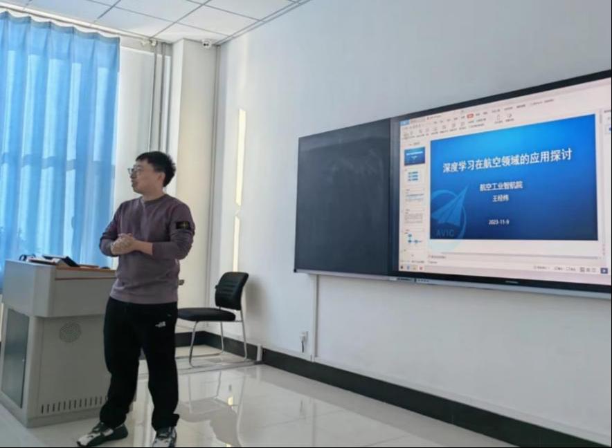开展学术沙龙系列活动。本期学术沙龙活动以“航空科技在AI时代下的发展与挑战”为主题,邀请到了中国航空研究院王经纬高级工程师与中国兵器北方导航控制技术中心智能控制技术室主任牛博通为主讲嘉宾,分享其研究成果和前沿观点。沙龙活动由温博阁老师主持,副院长程超、副院长鲁慧民及相关师生参会。