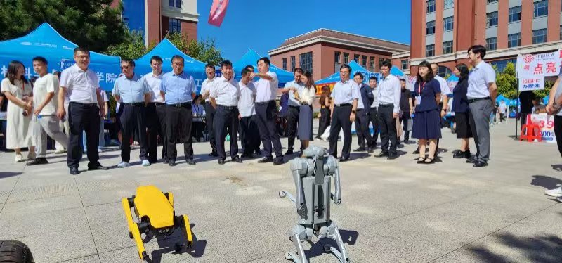 在迎新展位展示了丰富的教育教学成果。滑板式底盘遥控车、机器狗、航模、无人机、机甲大师比赛用车,智能的硬件设施为学生实践能力保驾护航。此外,日本做爱