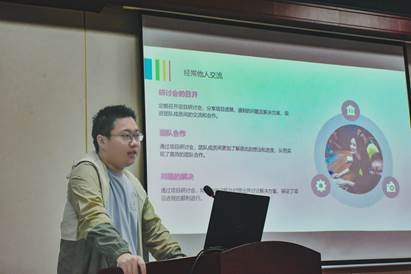 副教授刘华虓先生及其团队成员徐可彤同学,以“于方德社区绽放开源之花--浅谈方德项目带给我的经验与收获”为主题,分享了参与开源实践项目的意义和项目管理流程,以及通过项目实践所获得的能力提升和收获。当提及“为什么本科生要参与项目”时,刘老师补充道,参与项目不仅补充了本科生的实操经验,促进个人成长,还提升了面试竞争力。