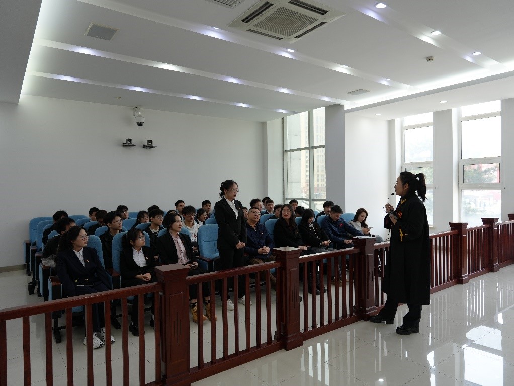 上午9时,师生抵达宽城区人民法院立案大厅。刑事审判庭张同秀法官讲解了解了“一站式”立案流程、智能化诉讼服务终端的功能及法院各职能部门的协同工作机制。学生们在实地探访中亲历区块链存证系统全流程回溯、AI量刑辅助模型精准推演,深刻感悟智慧法务的数字化、规范化理念,实现从“司法为民”理念感知到“科技向善”职业责任意识的双重升华。随后,师生前往二楼刑事审判区,实地参观被告人羁押室及刑事审判庭。