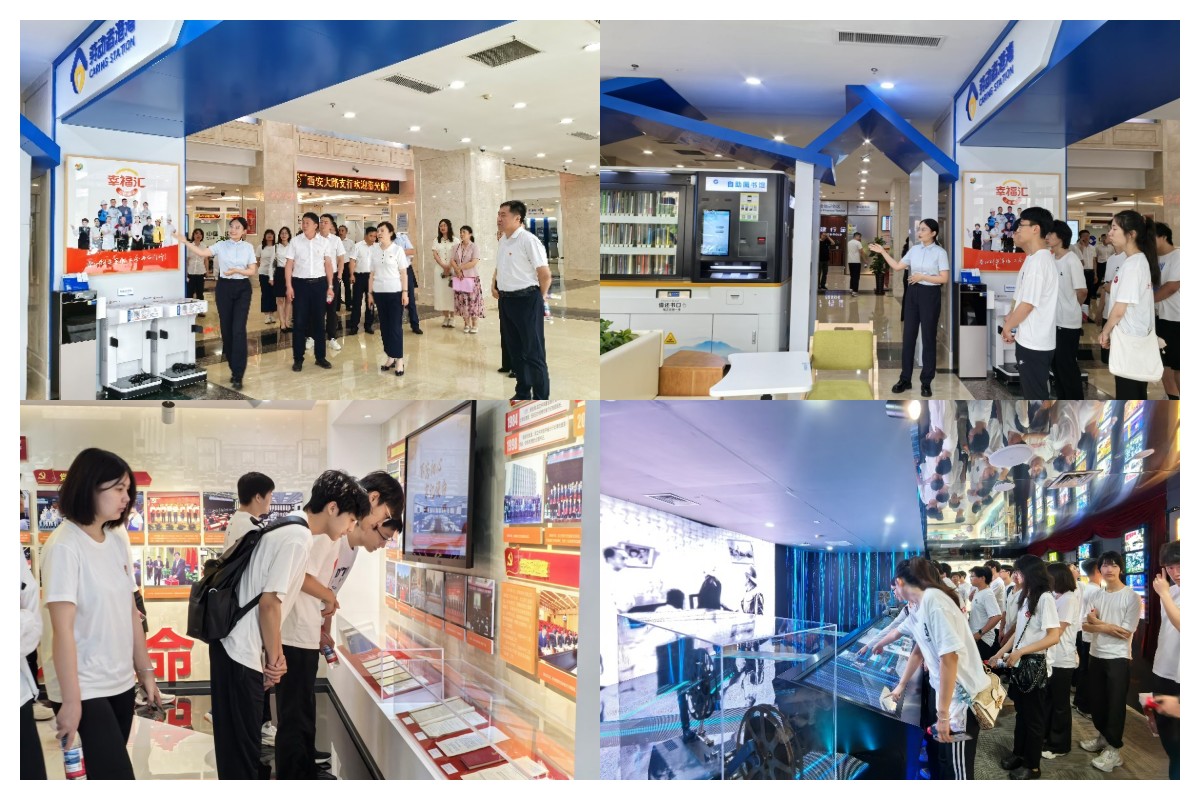 在建行工作人员讲解下,师生们通过珍贵的旧凭证、老物件,直观感受了吉林建行的历史积淀与改革变迁。沿着清晰的展陈脉络,大家对分行的发展沿革进行了系统了解。特别是在党建引领展厅,丰富的历史资料与生动的图片,翔实呈现了中国共产党领导下吉林建行的发展足迹,使师生们深刻领悟了红色金融的精神内涵与时代价值。