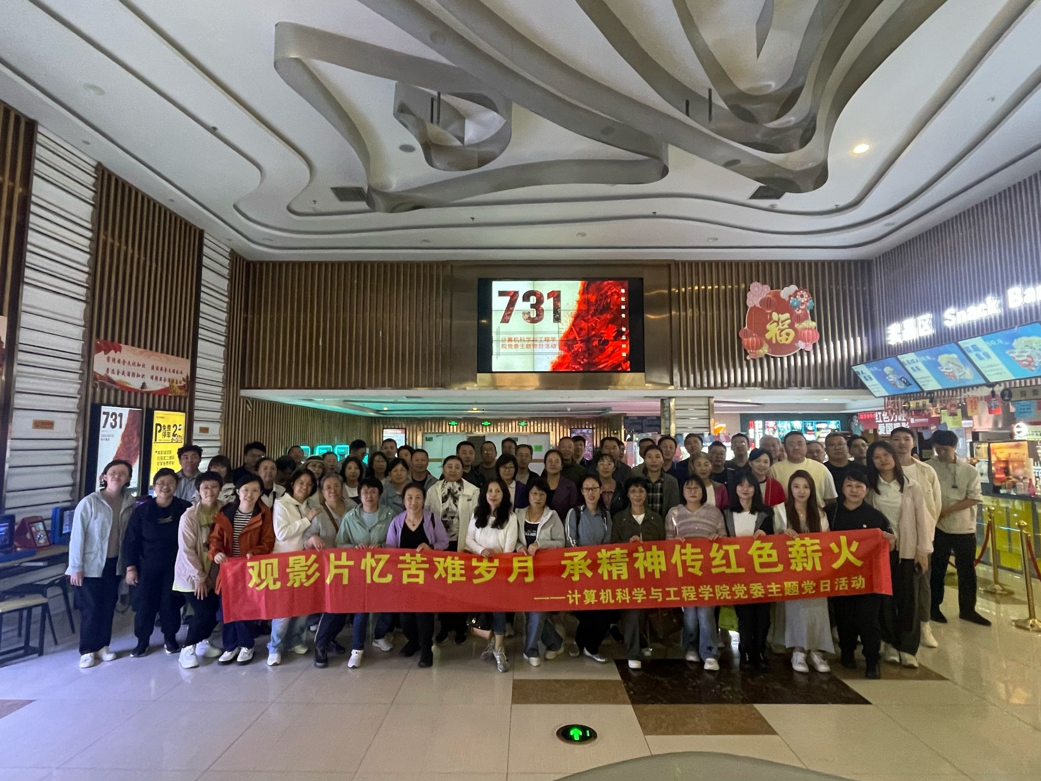 党委于 9 月 24 日组织全体教师党员,在欧亚长新吉视影城开展 “铭记历史 强国有我” 主题党日观影活动,共同观看历史题材影片《731》,以特殊的方式传承红色基因、凝聚奋进力量。