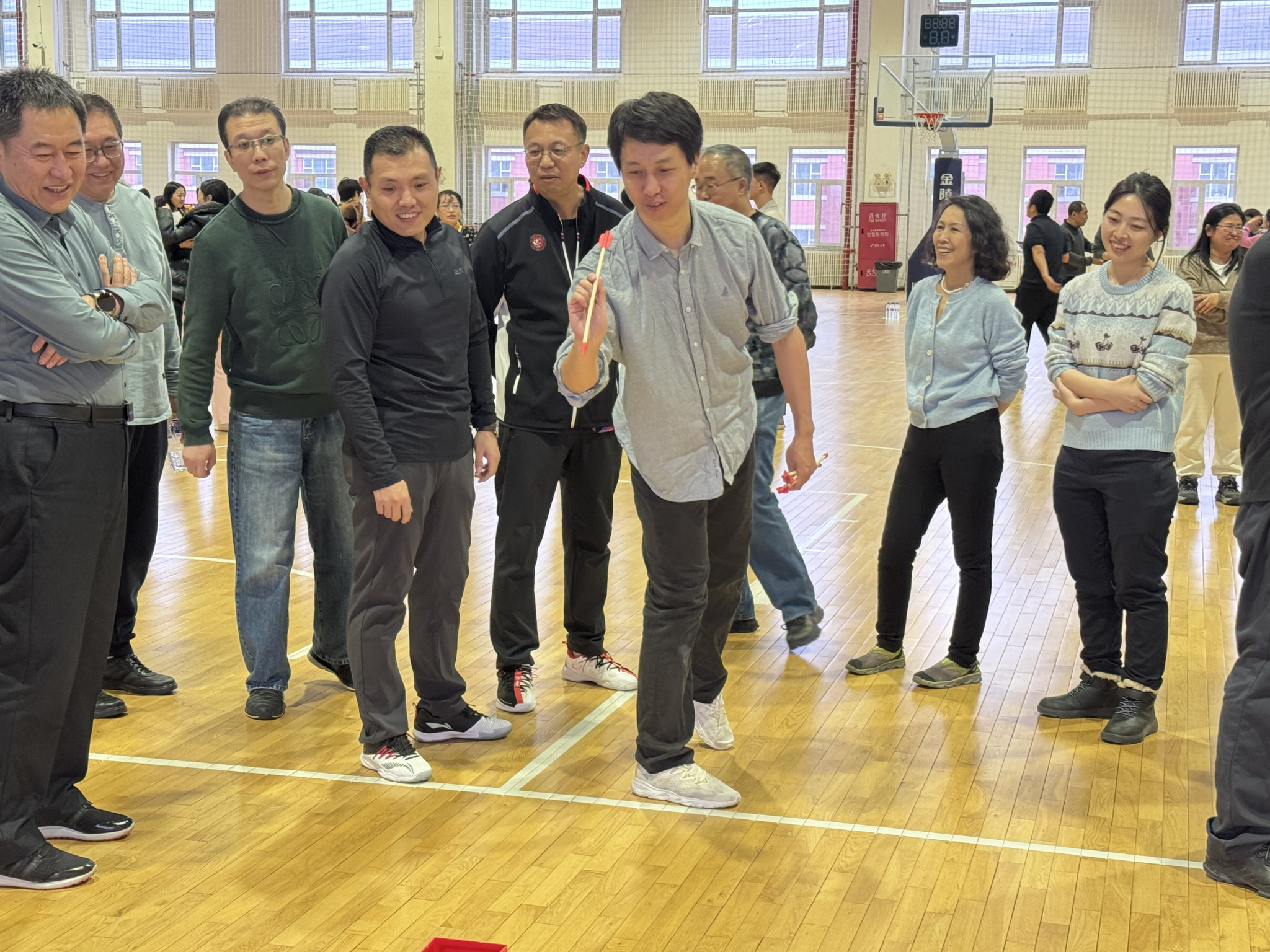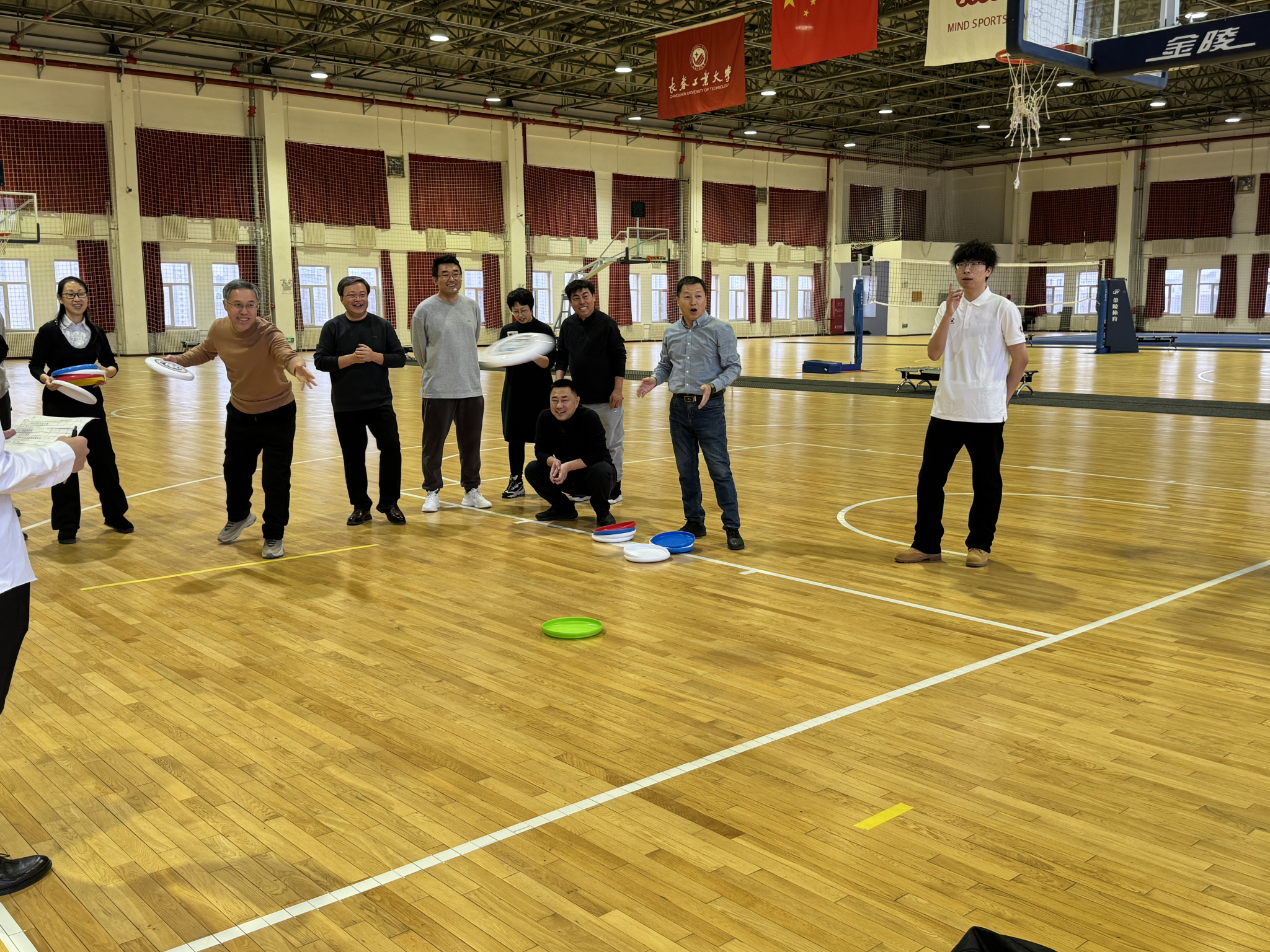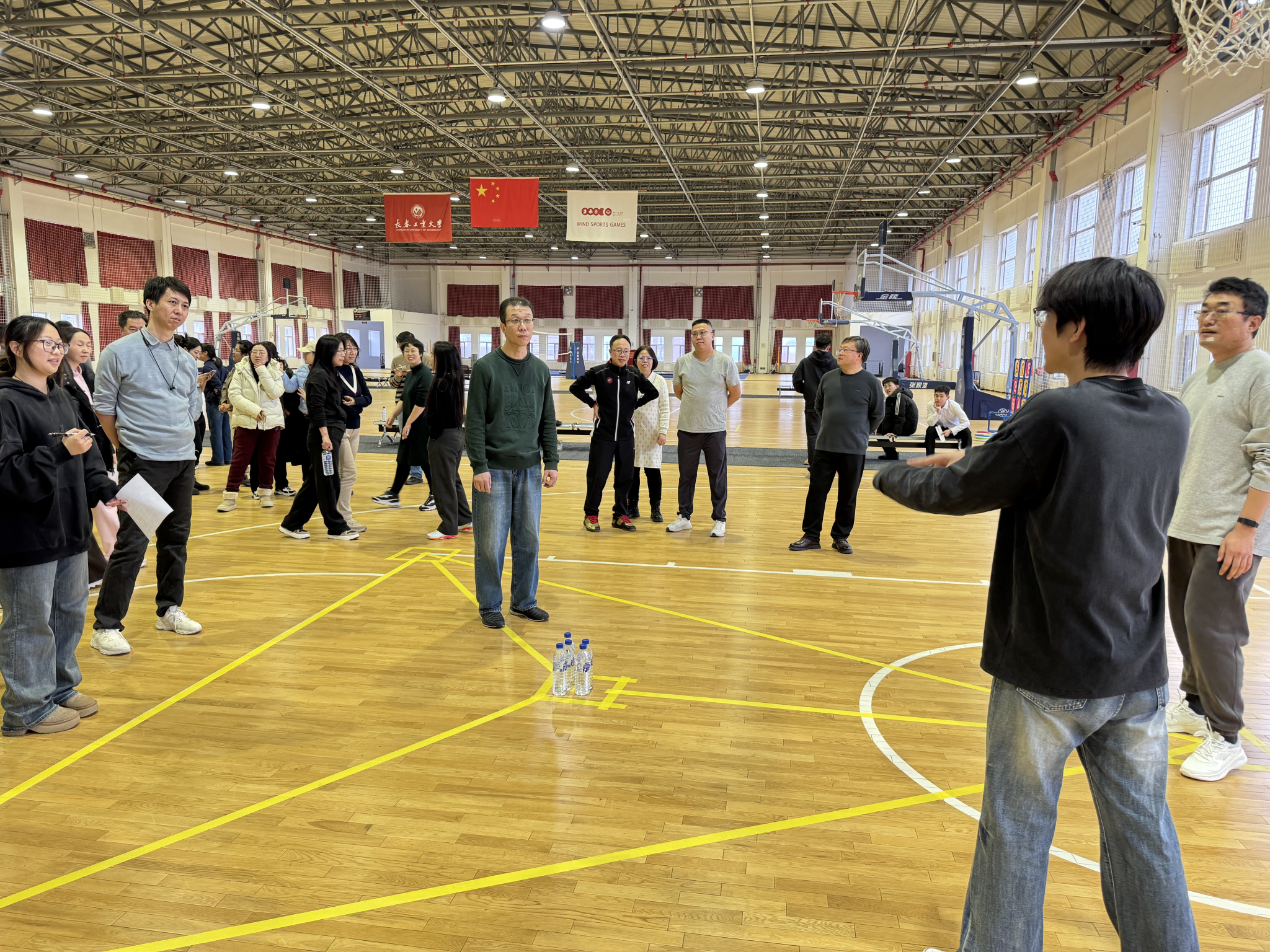 活动设置了水瓶大战、扔沙包、巧连直线、飞盘大作战、投壶五项趣味项目,七个代表队同台竞技。赛场上,教职工们全情投入,或奋勇争先比拼速度,或凝神聚力精准投掷,或默契配合攻克难关。趣味十足的比拼让大家忘却了工作的忙碌,现场掌声、笑声、欢呼声此起彼伏,洋溢着轻松愉悦的节日氛围。